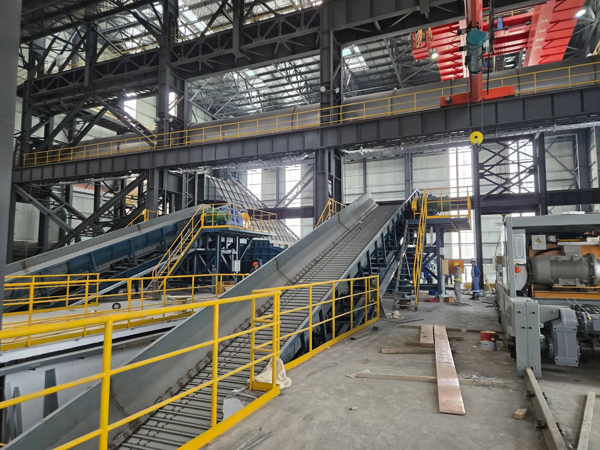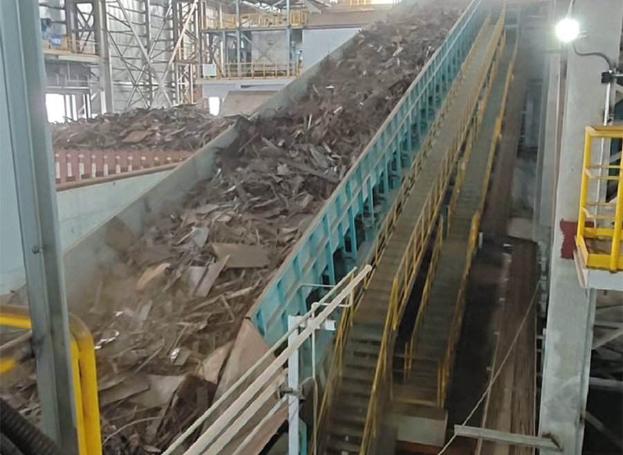 A heavy-duty apron conveyor specifically engineered for the continuous feeding and transportation of scrap steel in steelmaking and recycling operations. Designed to handle high impact loads, sharp-edged materials, and harsh working conditions, ensuring stable, safe, and long-term operation.